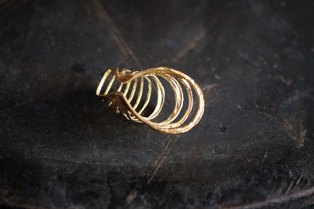 1mm程度の細い線を何層にも重ねて中に耳たぶが入るように