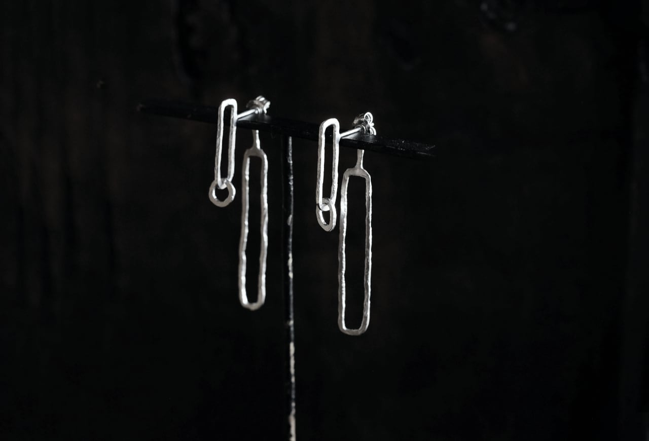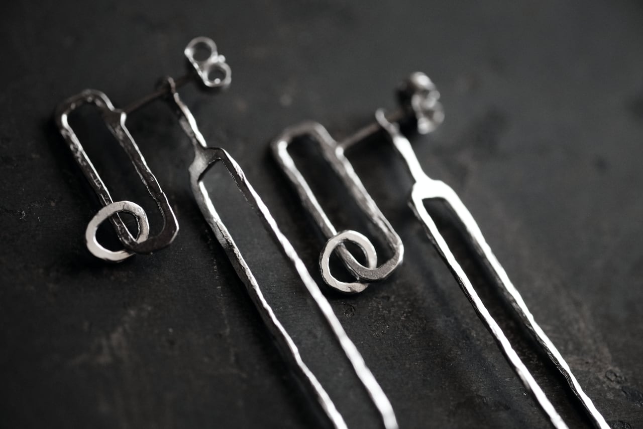 前と後ろではさみ込みようにつける四角で構成したピアスです。