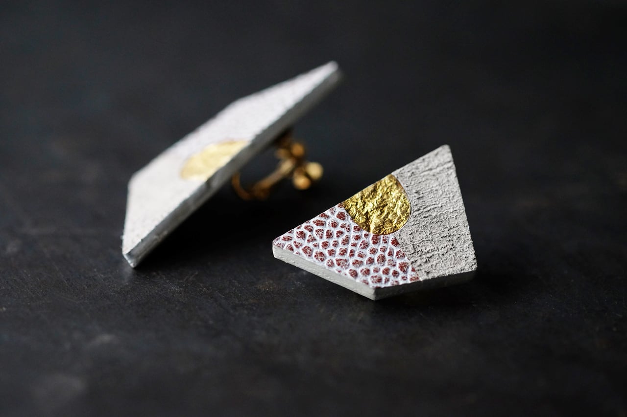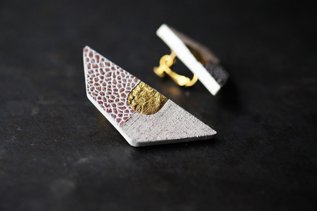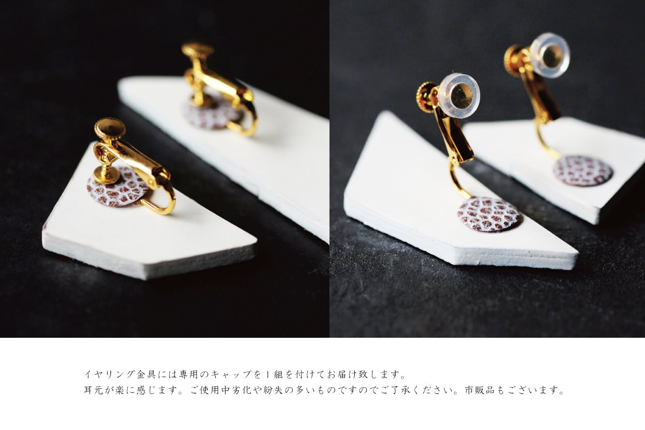 イヤリング :本体 : イタリアタンニンなめし牛革、真鍮に18Kをコーティング
